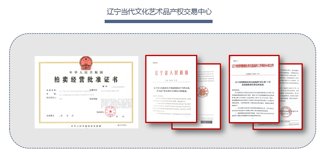 辽宁当代文化艺术品产权交易中心成立于2011年,由大型国有传媒集团一辽宁报刊传媒集团全资子公司北国文化与文化·金融品类的开创者一北京文交联合共同持股,以“资本推动时代,文化兴于当代”为发展理念,坚持服务实体经济,促进文化与金融产业的合作与发展。历经2013年、2018年两次全国清理整顿各类交易场所检查验收,获得省政府批准的文化艺术品交易平台。